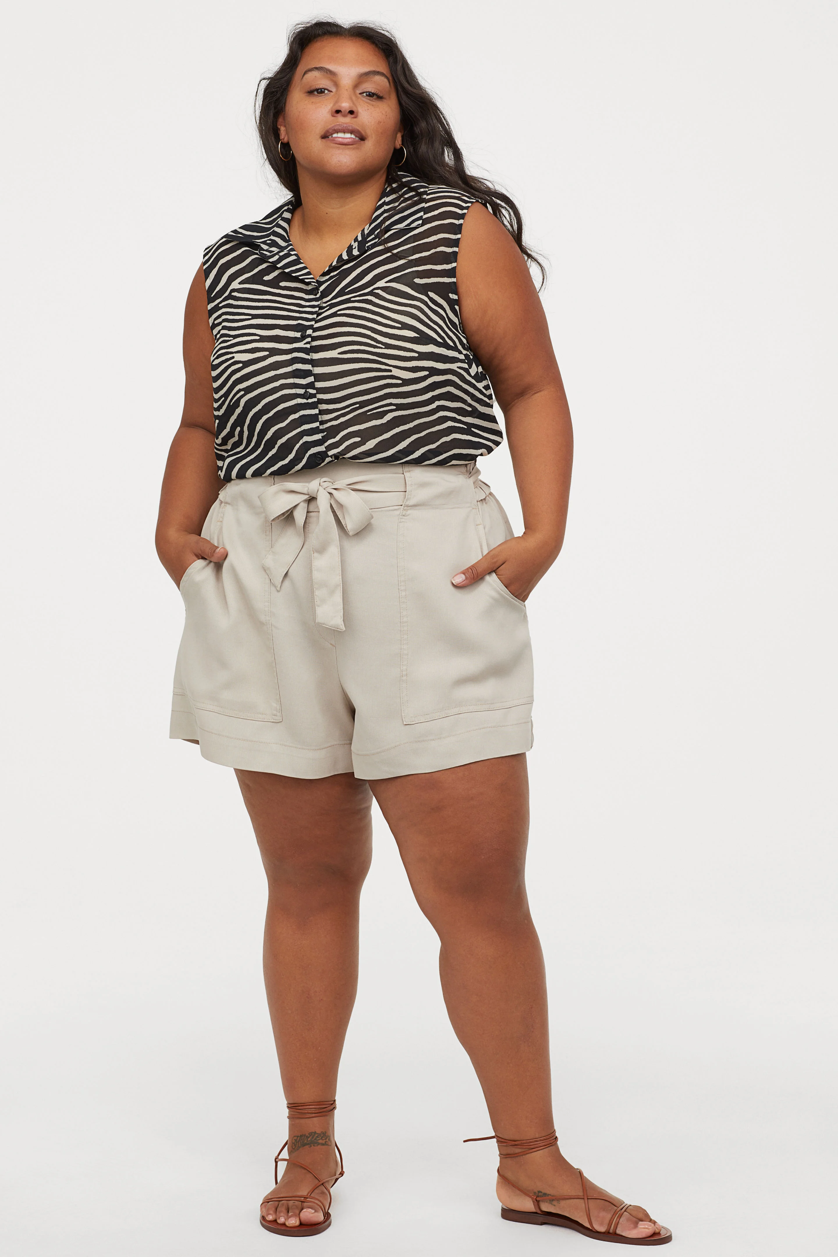 H M Plus Plus Size Paper Bag Shorts